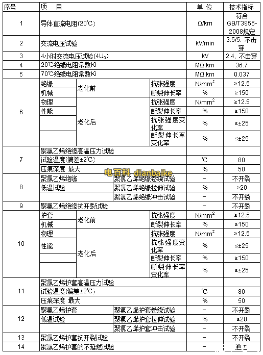 二、額定電壓0.6/1KV聚氯乙烯絕緣聚氯乙烯護(hù)套電力電纜(VV、VV22)主要性能指標(biāo)