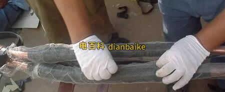 11、焊接地線,用附帶的編織銅線將接頭兩端的保護鋼鎧聯結(焊接)起來。