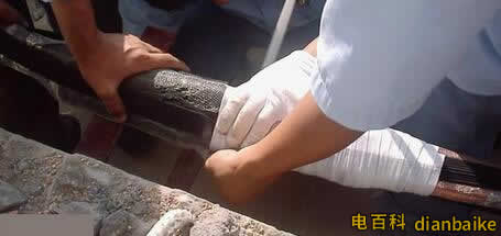 用黑膠布在外護套交疊處做包纏封口處理,至此,電纜中間頭制作結束。下面是終端接頭安裝: