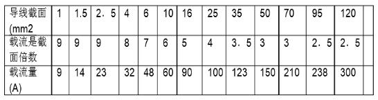 注:銅芯絕緣線的載流量要比同規格鋁線略大一些,可選擇比鋁線加大一個線號的載流量。如16mm2銅線的載流量,可按25mm2鋁線計算。