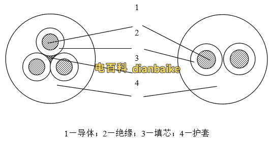 第三部分為結(jié)構(gòu)特征代號,表示電纜的結(jié)構(gòu)特征。字母含義如下:B——編織加強(qiáng);J——帶監(jiān)視線芯;P——非金屬屏蔽;PT——金屬屏蔽;Q——輕型;R——繞包加強(qiáng)。