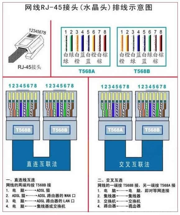 網線水晶頭接法分兩種,平行線接法和交叉線接法,下面就來介紹下網線水晶頭接法和水晶頭接法順序及網線水晶頭接法圖解。