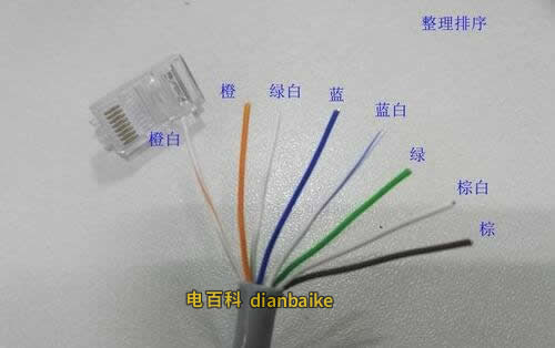 2、將網線外層護套剝開一小段,按照需要的順序,也就是圖片的順序整理排序