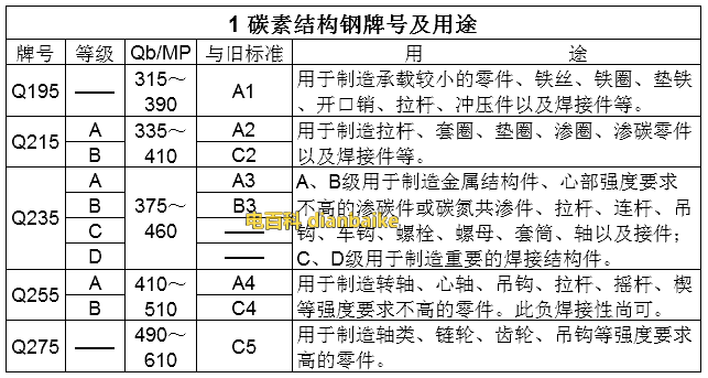 a)碳素結(jié)構(gòu)鋼:Q195;Q215(A、B);Q235(A、B、C);Q255(A、B);Q275。