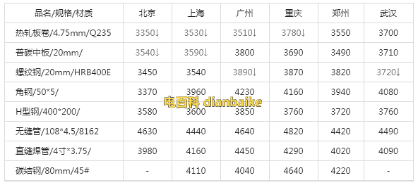 以上主要城市暢銷品種鋼材報價,僅供參考;更多關(guān)于鋼材問題請關(guān)注電百科,盜載必究。